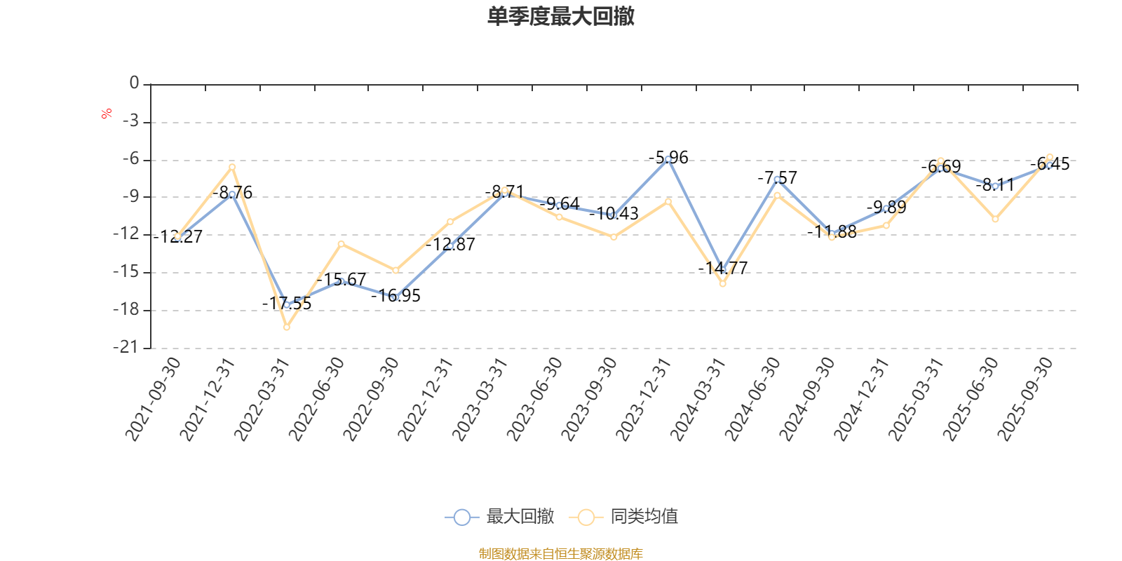 截至10月27日,基金近三年最大回撤为32.05%,同类可比基金排名110/363。单季度最大回撤出现在2022年一季度,为17.55%。