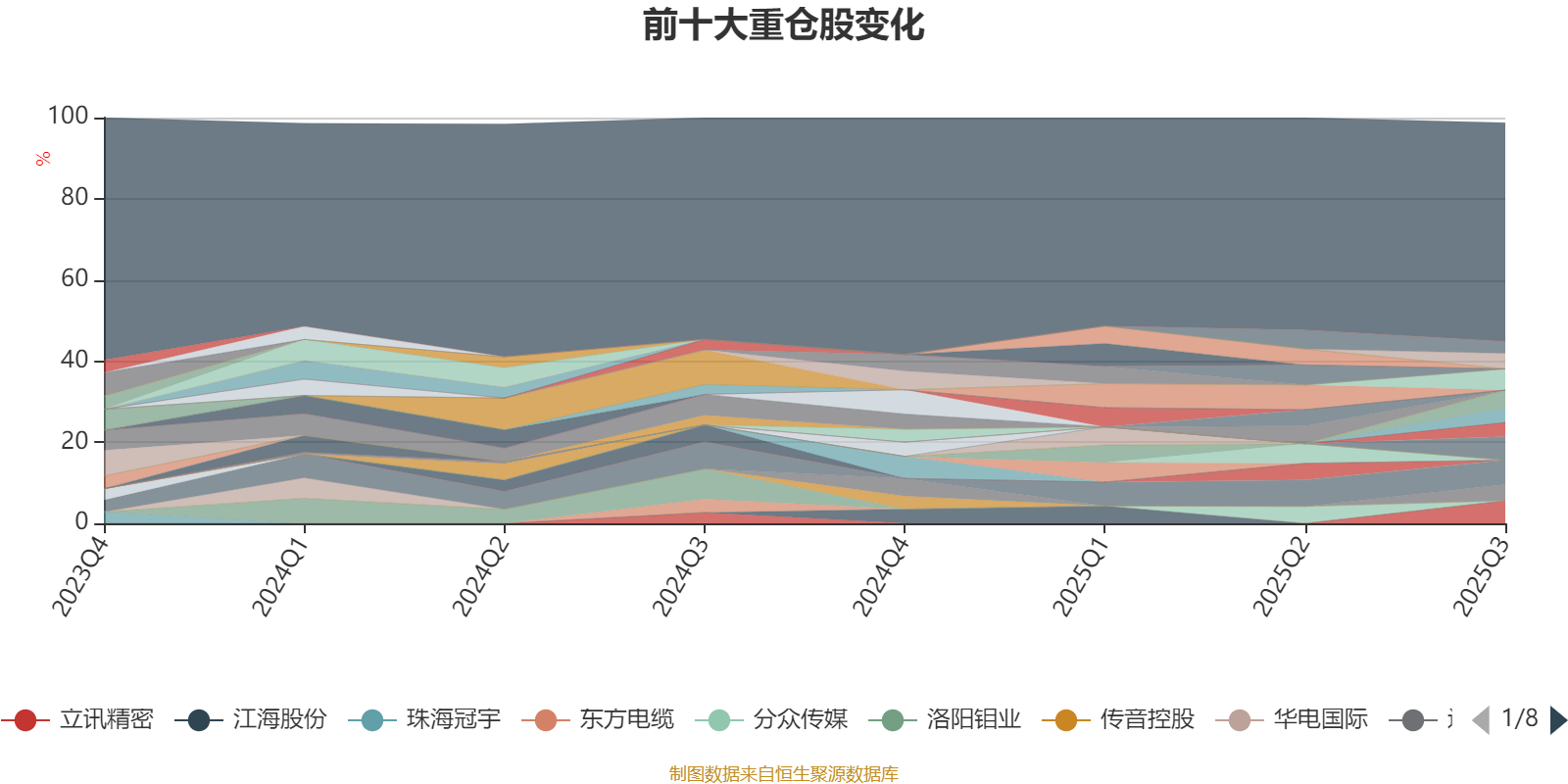 截至2025年三季度末,基金十大重仓股分别是紫金矿业、湖南裕能、立讯精密、海光信息、指南针、运达股份、安培龙、科华数据、中广核矿业、山东黄金。