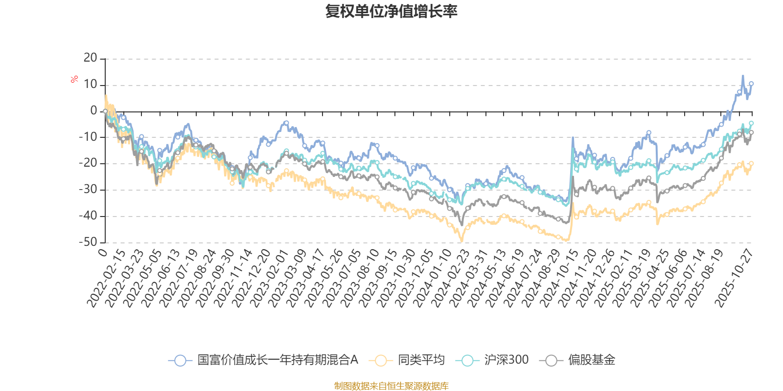 截至10月27日,国富价值成长一年持有期混合A近三个月复权单位净值增长率为19.62%,位于同类可比基金222/621;近半年复权单位净值增长率为32.96%,位于同类可比基金254/619;近一年复权单位净值增长率为31.72%,位于同类可比基金276/611;近三年复权单位净值增长率为49.57%,位于同类可比基金68/518。