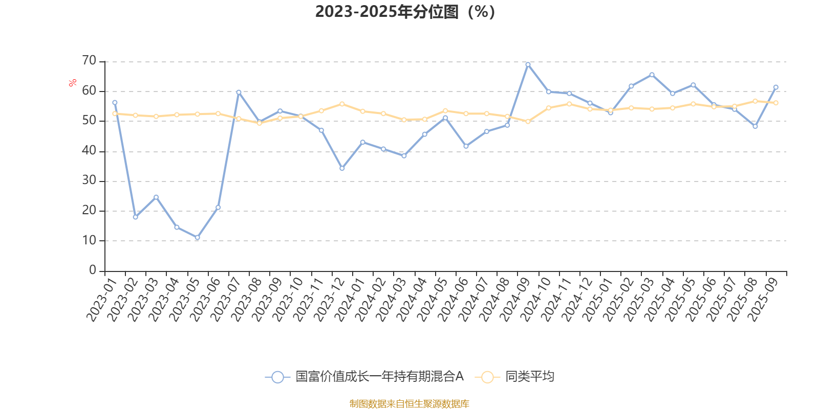 通过所选区间该基金净值增长率分位图,可以观察该基金与同类基金业绩比较情况。图为坐标原点到区间内某时点的净值增长率在同类基金中的分位数。