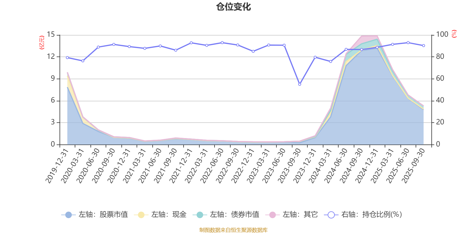 据定期报告数据统计,近三年平均股票仓位为84.5%,同类平均为85.66%。2025年上半年末基金达到92.99%的最高仓位,2023年三季度末最低,为55%。
