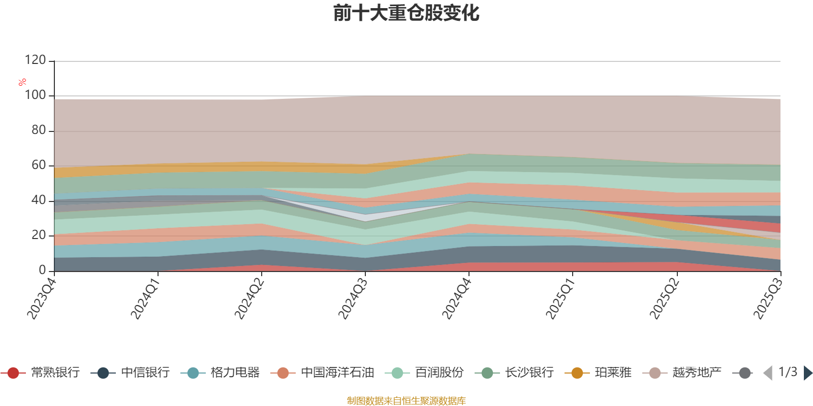该基金持股集中度较高,近2年前十大重仓股集中度长期超过60%。截至2025年三季度末,基金十大重仓股分别是腾讯控股、华润置地、中国海洋石油、中国海外发展、中信银行、招商银行、宁波银行、长沙银行、民生银行、越秀地产。