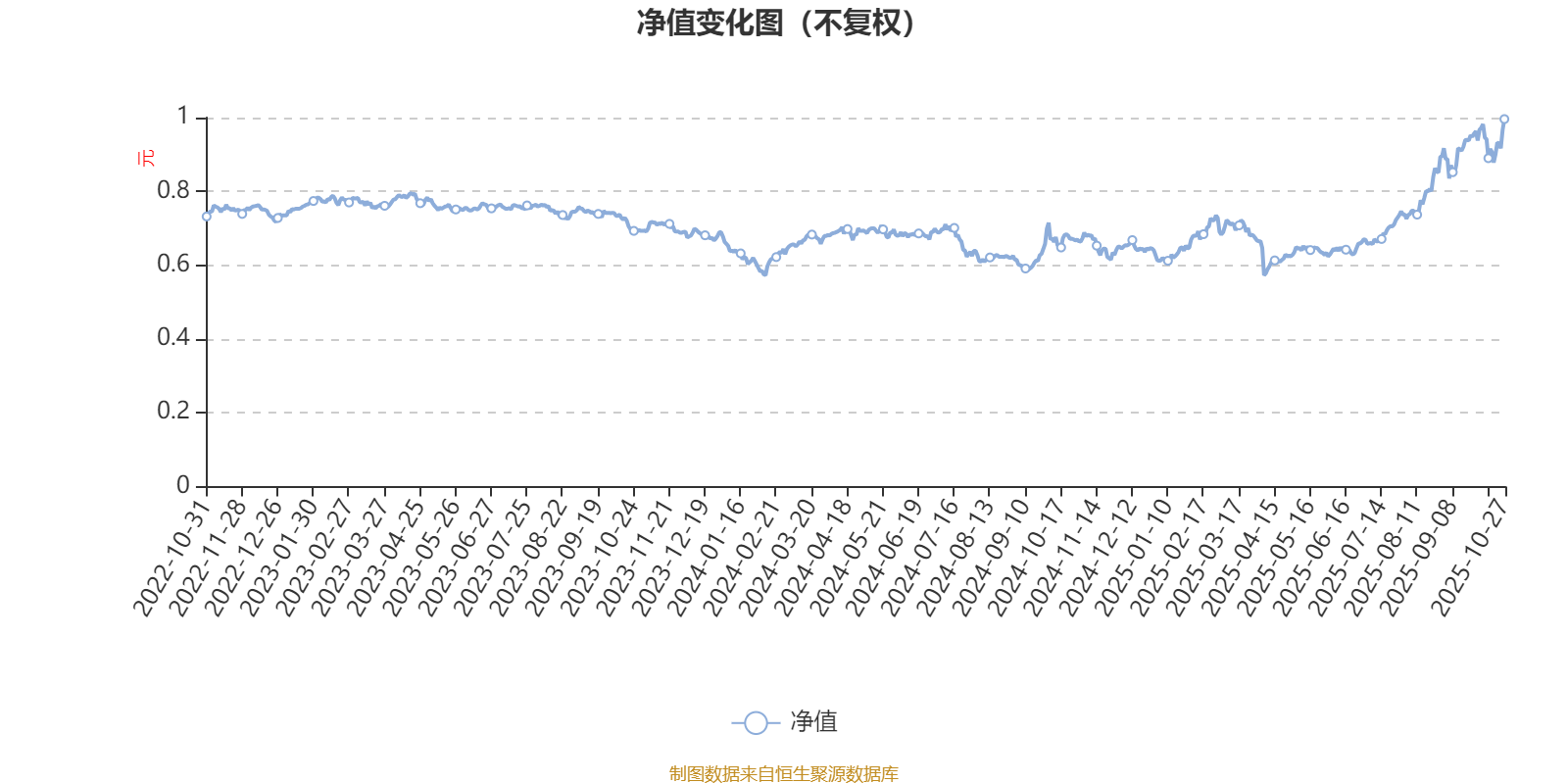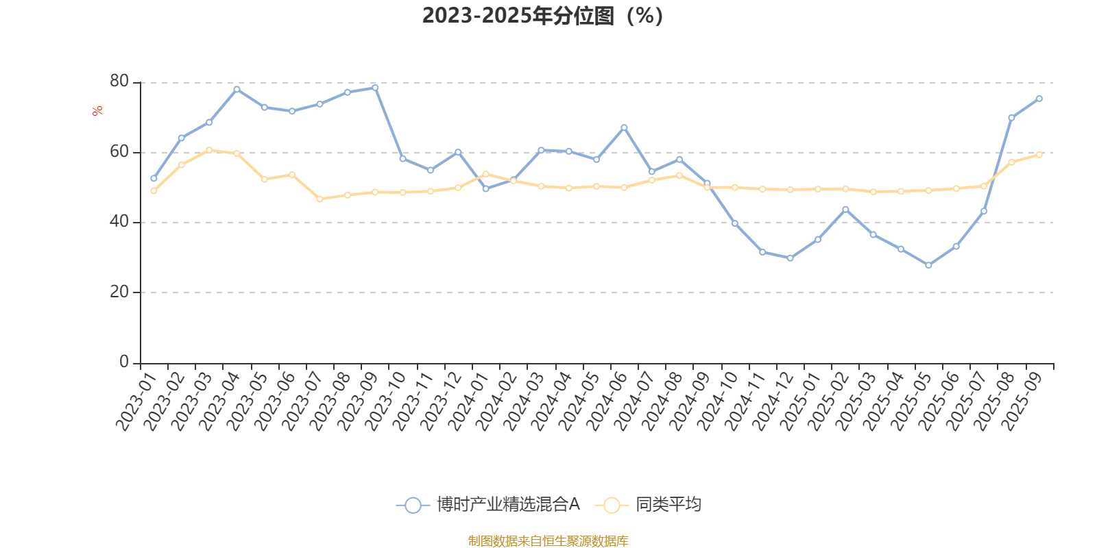 通过所选区间该基金净值增长率分位图,可以观察该基金与同类基金业绩比较情况。图为坐标原点到区间内某时点的净值增长率在同类基金中的分位数。