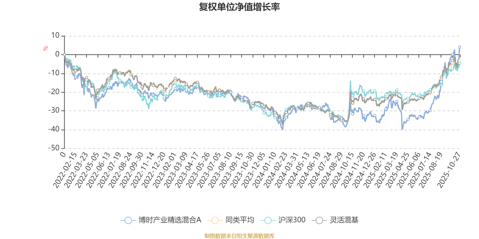 截至10月27日,博时产业精选混合A近三个月复权单位净值增长率为36.53%,位于同类可比基金130/1287;近半年复权单位净值增长率为59.04%,位于同类可比基金102/1287;近一年复权单位净值增长率为48.20%,位于同类可比基金180/1287;近三年复权单位净值增长率为31.95%,位于同类可比基金315/1286。