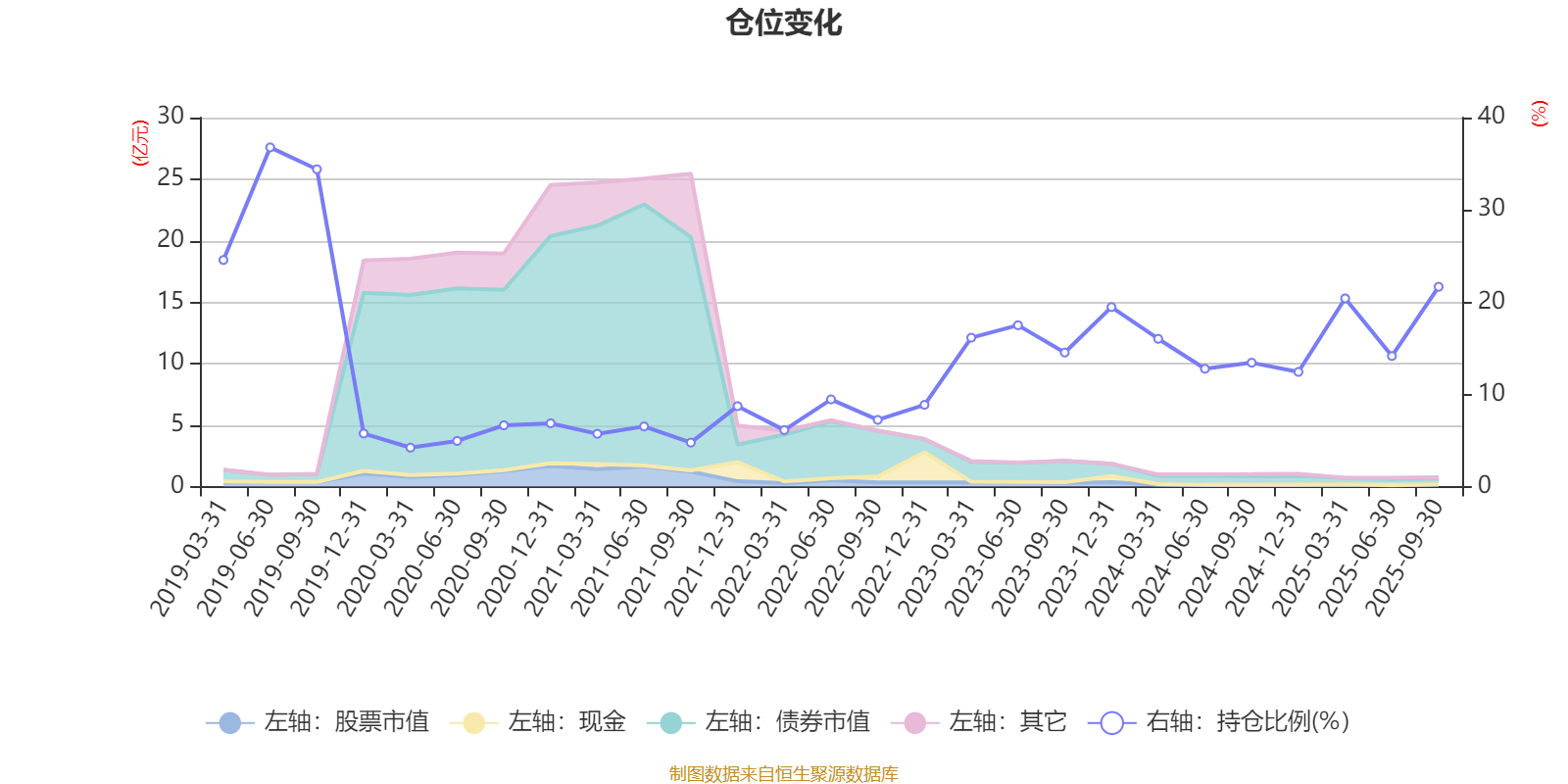 据定期报告数据统计,近三年平均股票仓位为15.61%,同类平均为19.03%。2019年上半年末基金达到36.77%的最高仓位,2020年一季度末最低,为4.22%。