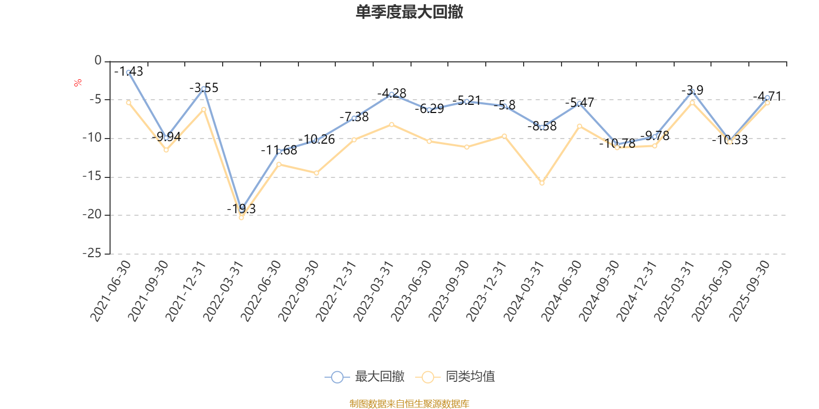 截至10月27日,基金近三年最大回撤为16.47%,同类可比基金排名10/251。单季度最大回撤出现在2022年一季度,为19.3%。