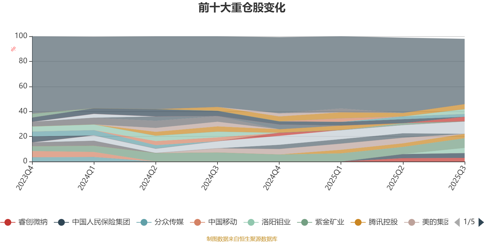 截至2025年三季度末,基金十大重仓股分别是宁德时代、紫金矿业、洛阳钼业、蓝思科技、工业富联、中国人民保险集团、中芯国际、腾讯控股、睿创微纳、中国平安。