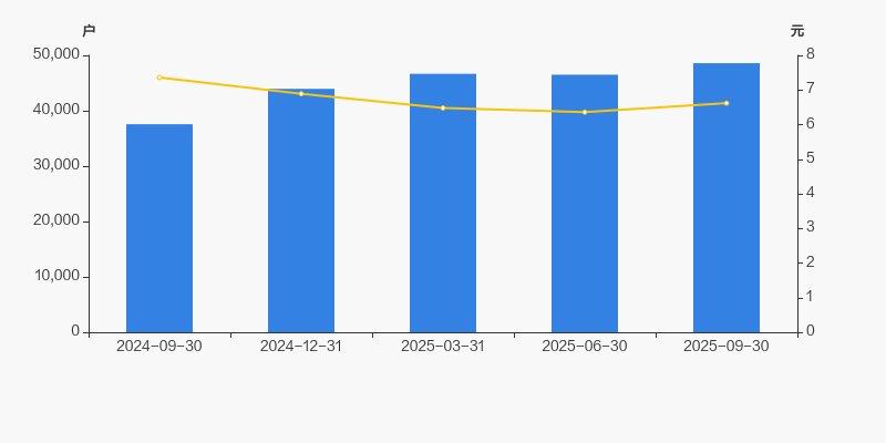 截至2025年9月30日,公司最新总股本为28.77亿股,且均为流通股。户均持有流通股数量由上期的6.19万股下降至5.92万股,户均流通市值39.19万元。