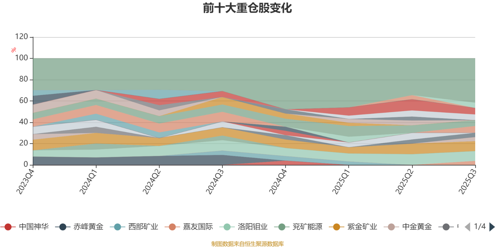 该基金持股集中度较高。截至2025年三季度末,基金十大重仓股分别是紫金矿业、洛阳钼业、铜陵有色、株冶集团、湖南黄金、金诚信、新钢股份、电投能源、中金黄金、嘉友国际。