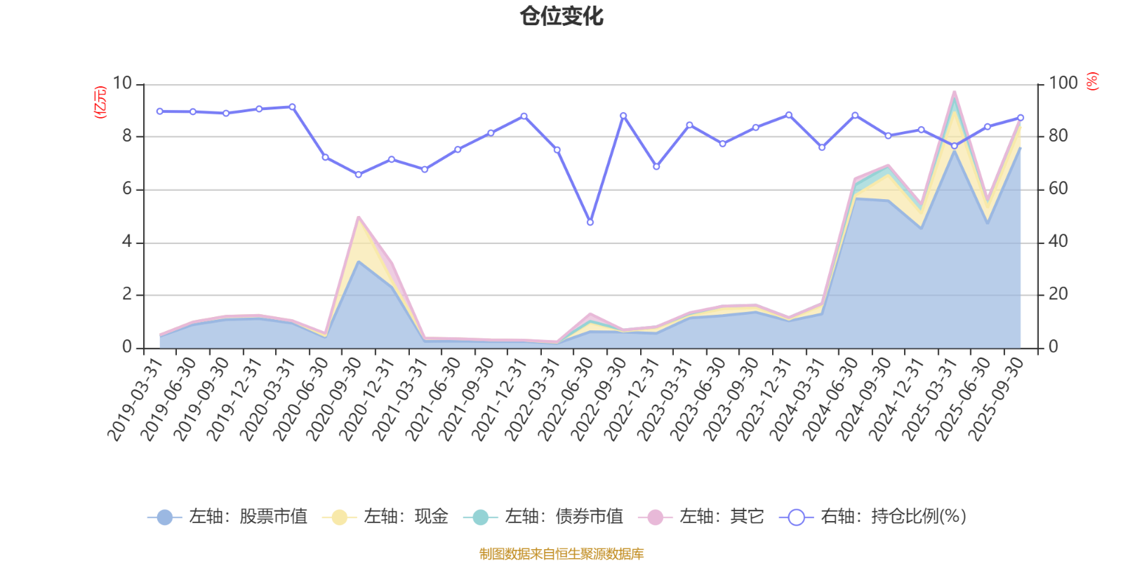 据定期报告数据统计,近三年平均股票仓位为81.5%,同类平均为86.57%。2020年一季度末基金达到91.41%的最高仓位,2022年上半年末最低,为47.69%。