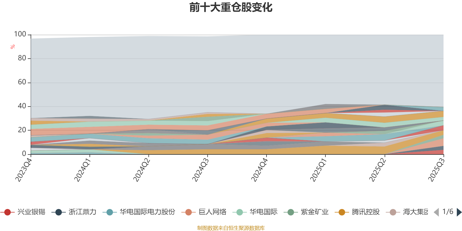 截至2025年三季度末,基金十大重仓股分别是巨人网络、恺英网络、宁德时代、大金重工、腾讯控股、兴业银锡、浙江鼎力、工业富联、东岳集团、紫金矿业。