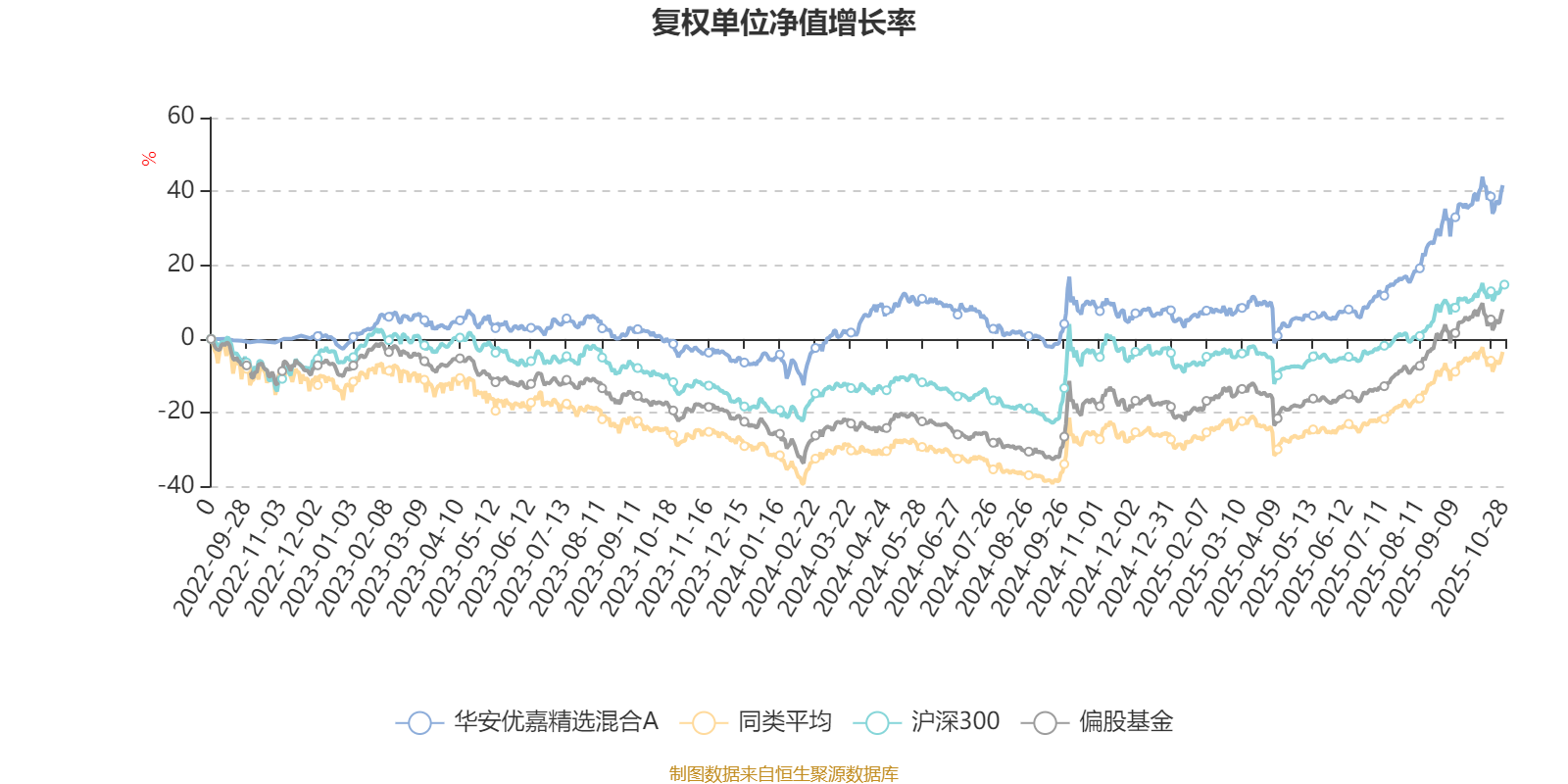 截至10月27日,华安优嘉精选混合A近三个月复权单位净值增长率为22.08%,位于同类可比基金183/621;近半年复权单位净值增长率为34.21%,位于同类可比基金233/619;近一年复权单位净值增长率为29.16%,位于同类可比基金304/611;近三年复权单位净值增长率为42.82%,位于同类可比基金98/518。