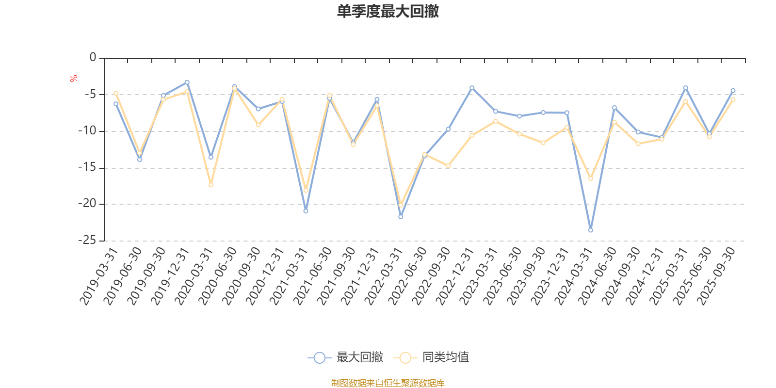 截至10月27日,基金近三年最大回撤为34.08%,同类可比基金排名222/513。单季度最大回撤出现在2024年一季度,为23.54%。