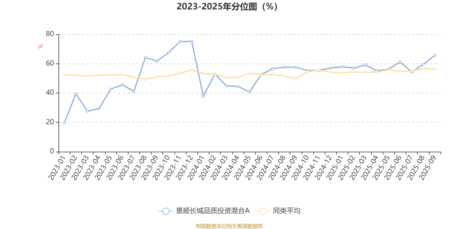 通过所选区间该基金净值增长率分位图,可以观察该基金与同类基金业绩比较情况。图为坐标原点到区间内某时点的净值增长率在同类基金中的分位数。