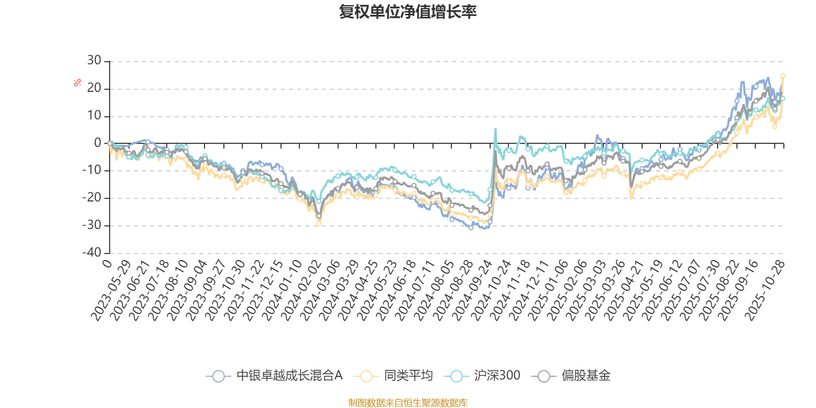 截至10月27日,中银卓越成长混合A近三个月复权单位净值增长率为18.97%,位于同类可比基金228/621;近半年复权单位净值增长率为32.08%,位于同类可比基金260/619;近一年复权单位净值增长率为43.73%,位于同类可比基金150/611。