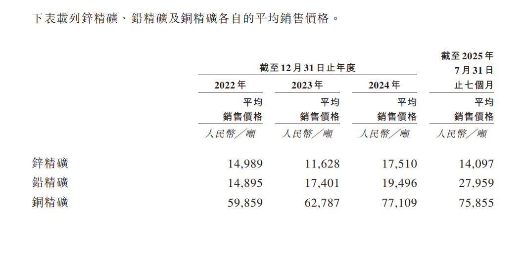 西藏智汇矿业三大矿产产品中,有两大品种在2025年销售均价处于高位。2025年1-7月,铅精矿的平均销售均价为2.8万元/吨,创下三年多来的新高;铜精矿的平均销售均价为7.59万元/吨,虽然较2024年的7.71万元/吨小幅下跌,但依然处于三年来的高位。