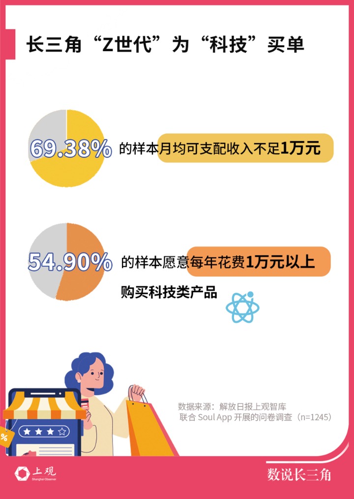 消费市场中,“Z世代”的作用凸显。作为长三角消费市场的主力军之一,他们的消费偏好与决策逻辑影响市场走向,近期,上观智库联合Soul App对长三角地区“Z世代”青年进行了一项专项调研,调研中的一些发现,成为解读长三角消费市场趋势的重要窗口。
