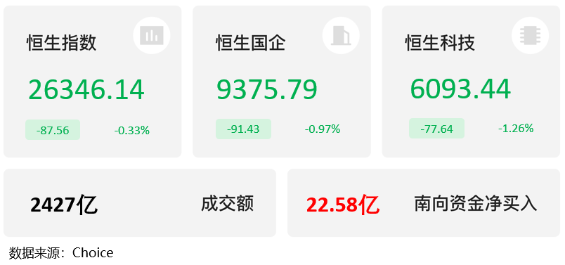盘面上,作为市场风向标的大型科技股午后转跌拖累大市下行,现货黄金跌破3900美元,黄金股全天呈下跌行情,热门板块午后跌势明显扩大,纸业股、手游股、家电股、影视股、风电股集体弱势。另一方面,摩通指澳门10月赌收存潜在上行趋势,濠赌股总体呈现上涨行情,乳制品股表现活跃,保险股分化严重。此外,港股两只新股上市,滴普科技涨超121%,八马茶业上市涨86.7%。