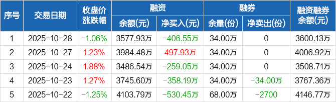 新能源ETF:融资净偿还406.55万元,融资余额3577.93万元(10-28)