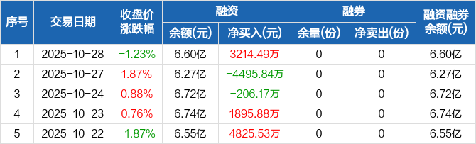 恒生科技ETF:融资净买入3214.49万元,融资余额6.6亿元(10-28)