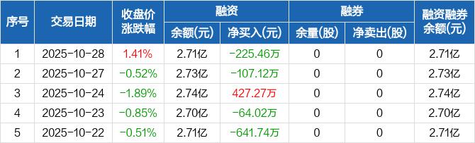 海南海药:融资净偿还225.46万元,融资余额2.71亿元(10-28)