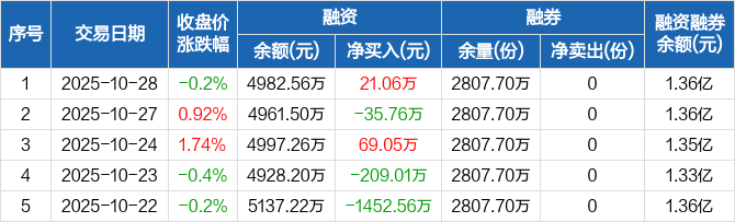 1000ETF:融资净买入21.06万元,融资余额4982.56万元(10-28)