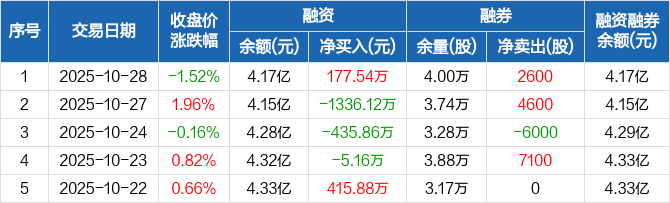 京山轻机:融资净买入177.54万元,融资余额4.17亿元(10-28)