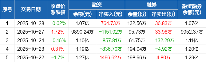 养殖ETF:融资净买入764.73万元,融资余额1.07亿元(10-28)