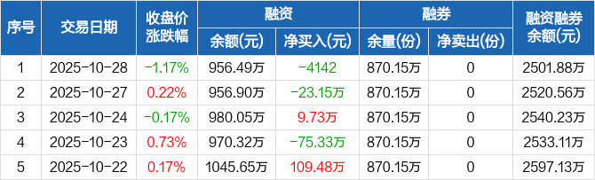 深红利ETF:融资净偿还4142元,融资余额956.49万元(10-28)