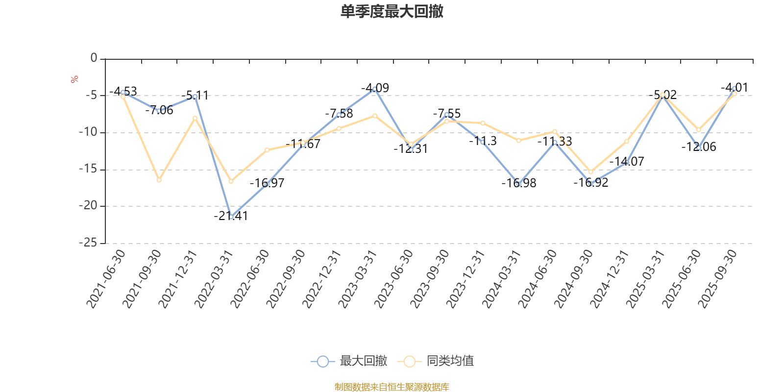 截至10月27日,基金近三年最大回撤为28.65%,同类可比基金排名12/29。单季度最大回撤出现在2022年一季度,为21.41%。
