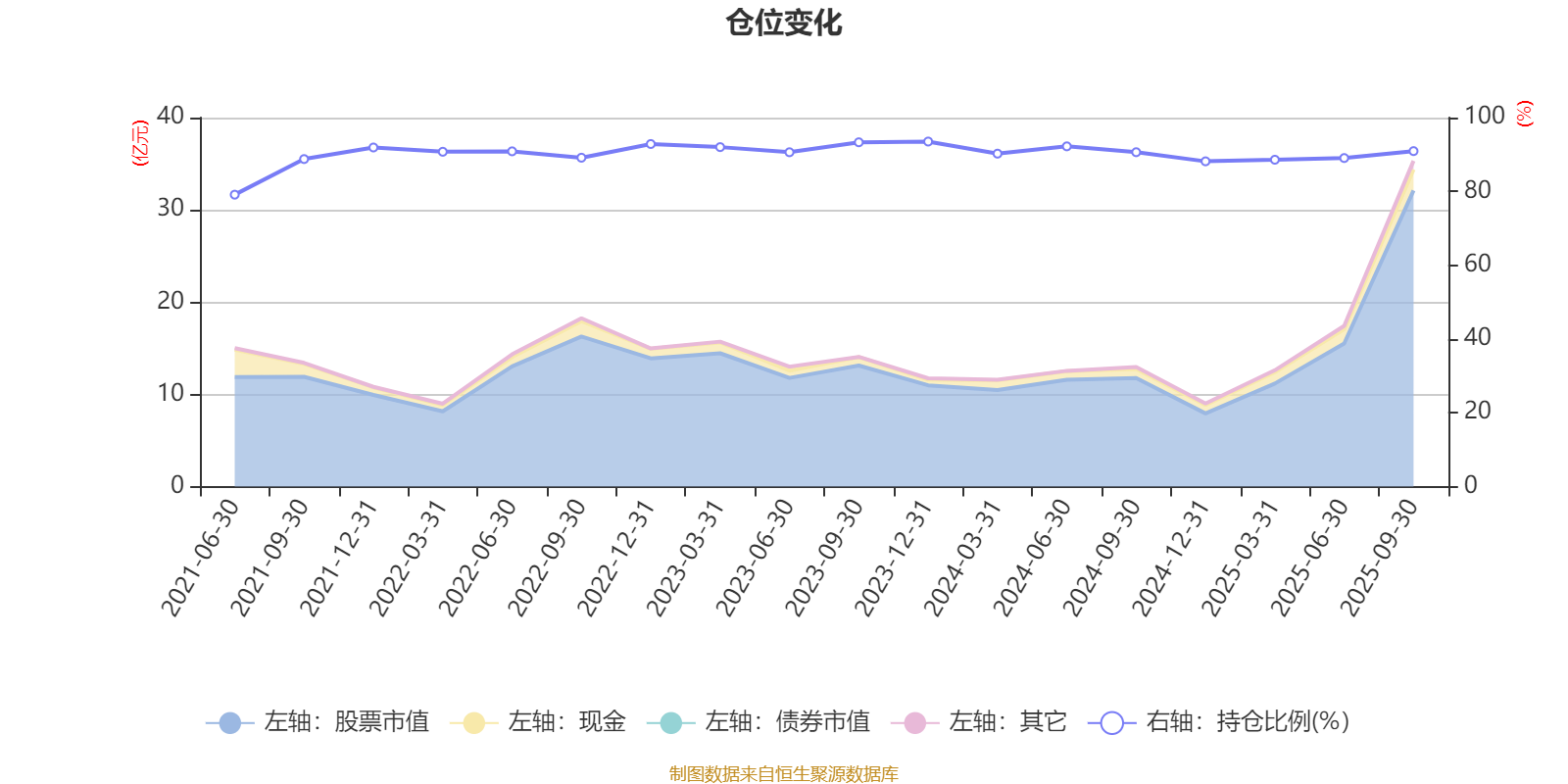 据定期报告数据统计,近三年平均股票仓位为91%,同类平均为86.57%。2023年末基金达到93.51%的最高仓位,2021年上半年末最低,为79.11%。