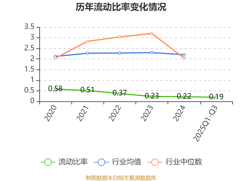 2025年前三季度,公司流动比率为0.19,速动比率为0.11。