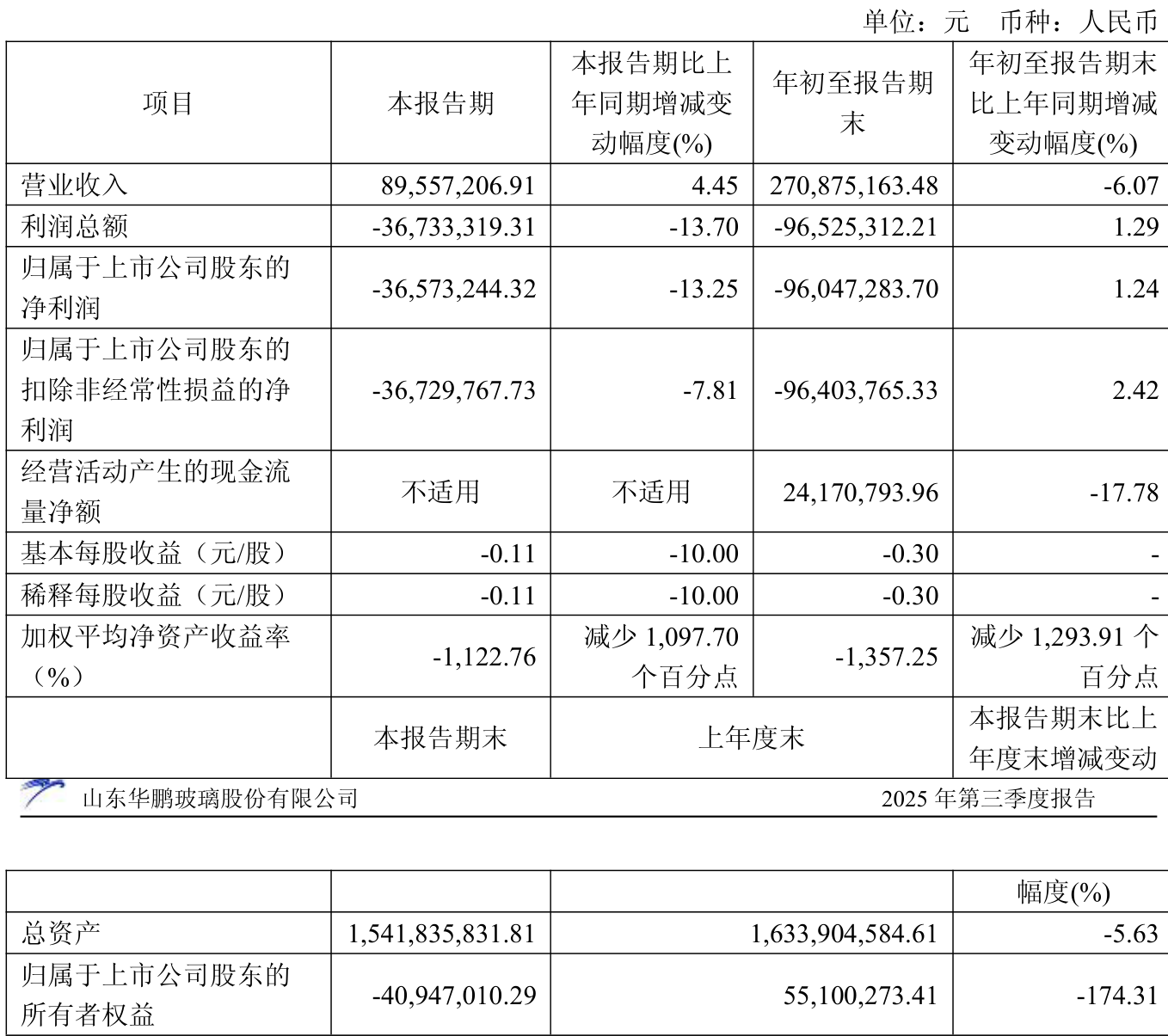 中证智能财讯 ST华鹏(603021)10月29日披露2025年第三季度报告。前三季度公司实现营业总收入2.71亿元,同比下降6.07%;归母净利润亏损9604.73万元,上年同期亏损9725.32万元;扣非净利润亏损9640.38万元,上年同期亏损9879.12万元;经营活动产生的现金流量净额为2417.08万元,同比下降17.78%;报告期内,ST华鹏基本每股收益为-0.3元。