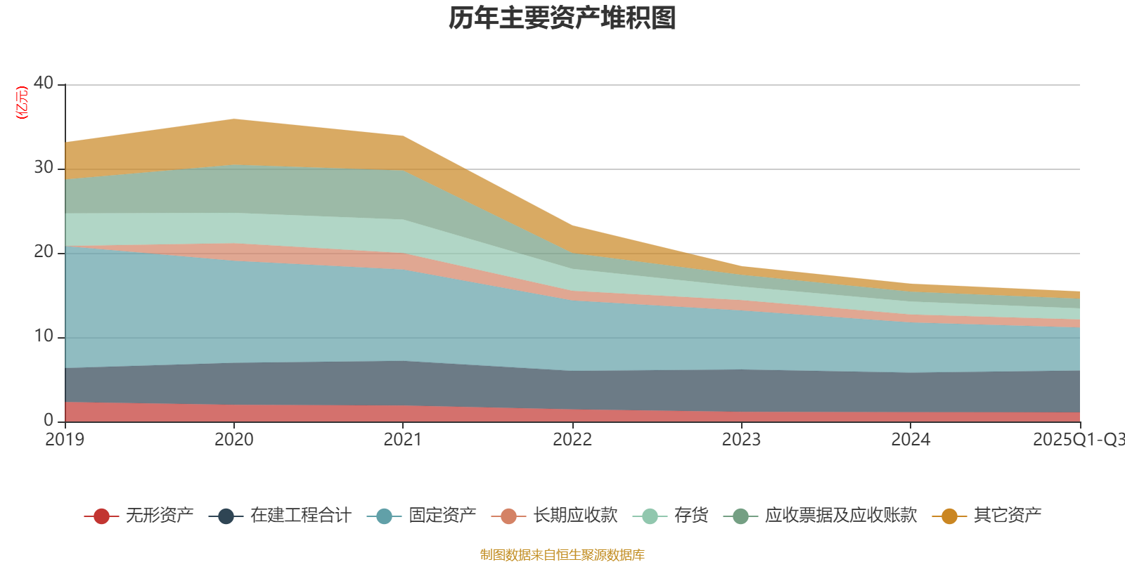 资产重大变化方面,截至2025年三季度末,公司在建工程合计较上年末增加5.77%,占公司总资产比重上升3.46个百分点;固定资产较上年末减少14.12%,占公司总资产比重下降3.27个百分点;存货较上年末减少14.33%,占公司总资产比重下降0.86个百分点;货币资金较上年末减少26.81%,占公司总资产比重下降0.77个百分点。