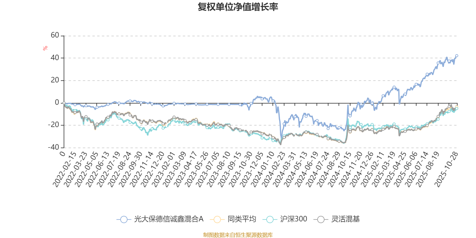 截至10月28日,光大保德信诚鑫混合A近三个月复权单位净值增长率为11.66%,位于同类可比基金643/1287;近半年复权单位净值增长率为33.68%,位于同类可比基金404/1287;近一年复权单位净值增长率为48.55%,位于同类可比基金169/1287;近三年复权单位净值增长率为42.75%,位于同类可比基金204/1286。