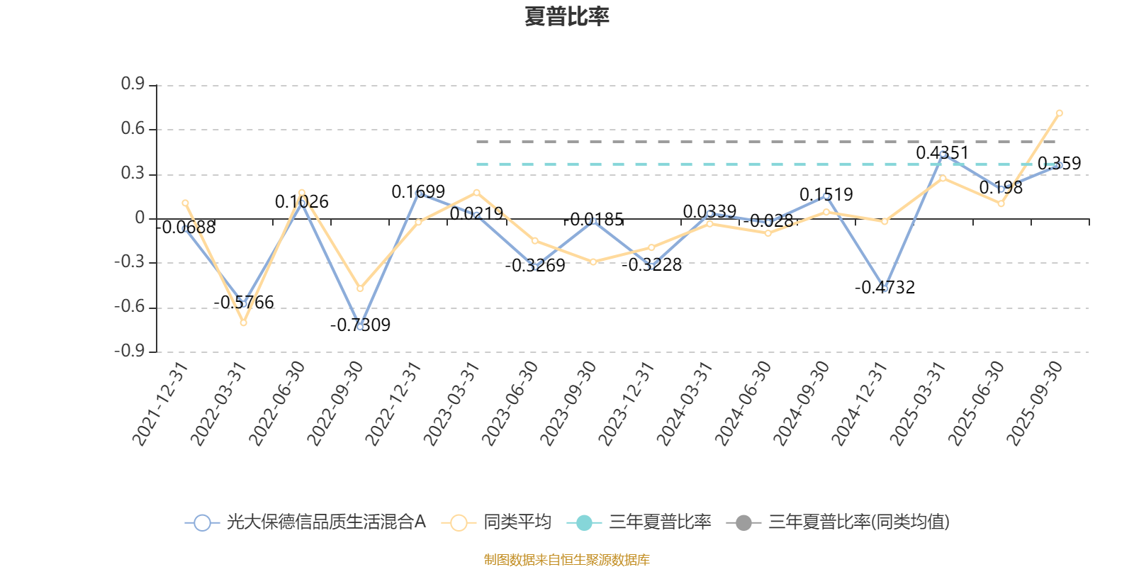 截至9月30日,基金近三年夏普比率为0.3651,位于同类可比基金355/518。