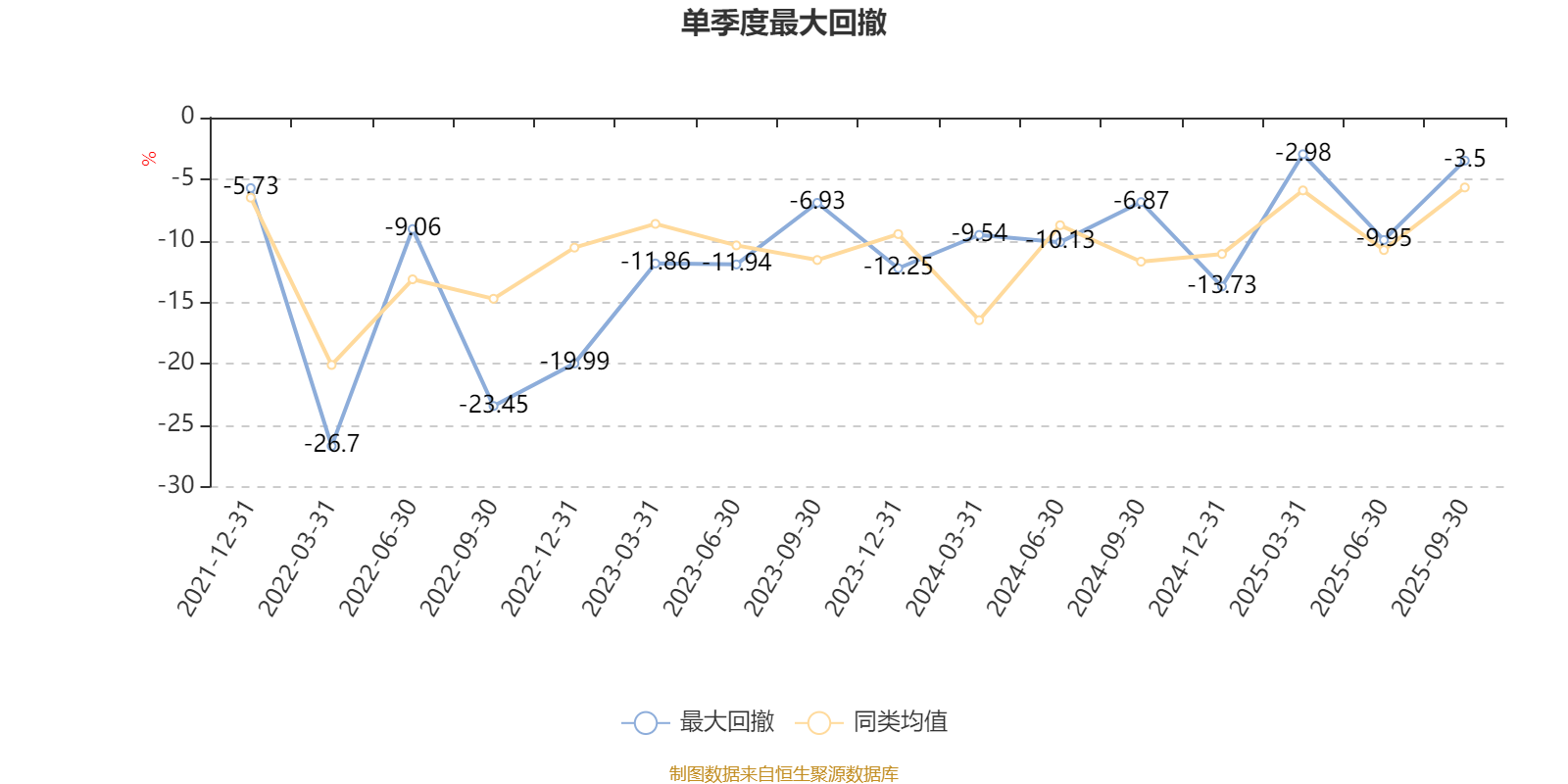 截至10月27日,基金近三年最大回撤为30.69%,同类可比基金排名142/513。单季度最大回撤出现在2022年一季度,为26.7%。