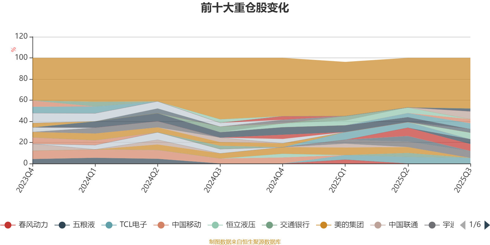 截至2025年三季度末,基金十大重仓股分别是阿里巴巴-W、隆鑫通用、宇通客车、新华保险、中国人寿、TCL电子、香港交易所、恒瑞医药、信达生物、双环传动。