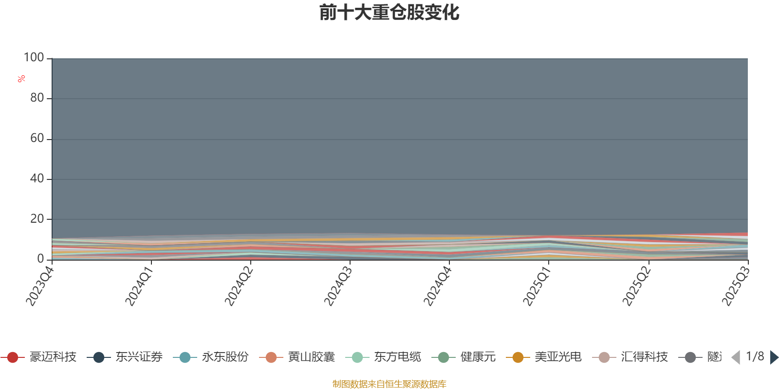 截至2025年三季度末,基金十大重仓股分别是晶合集成、芯联集成、思特威、云天化、格科微、宁德时代、网宿科技、中国软件、和辉光电、铜陵有色。