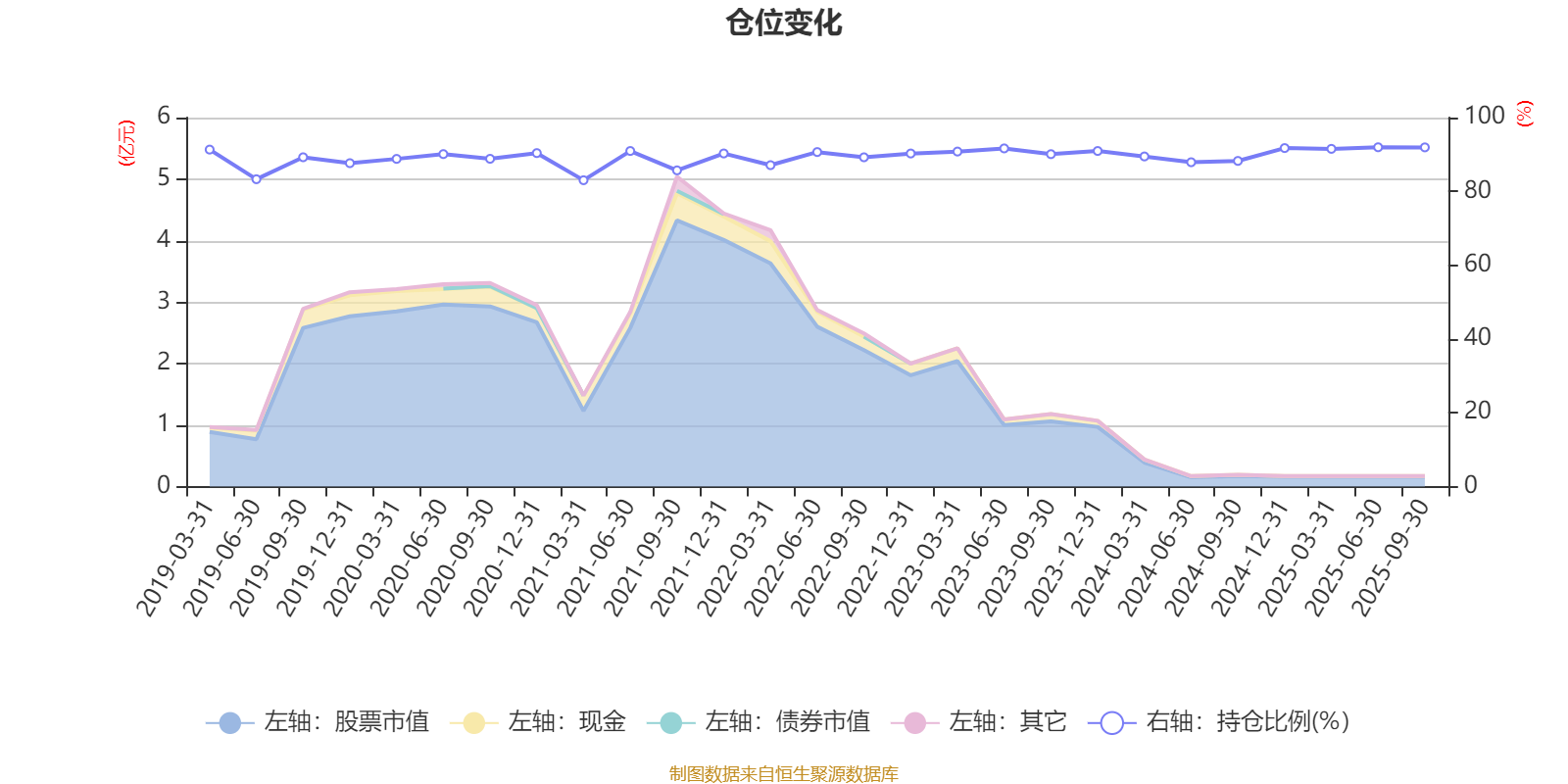 据定期报告数据统计,近三年平均股票仓位为90.55%,同类平均为83.73%。2025年上半年末基金达到91.96%的最高仓位,2021年一季度末最低,为83.03%。
