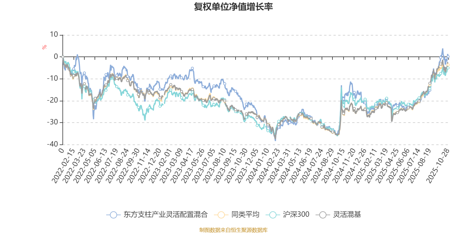 截至10月28日,东方支柱产业灵活配置混合近三个月复权单位净值增长率为19.64%,位于同类可比基金372/1287;近半年复权单位净值增长率为30.29%,位于同类可比基金477/1287;近一年复权单位净值增长率为19.61%,位于同类可比基金685/1287;近三年复权单位净值增长率为25.23%,位于同类可比基金453/1286。