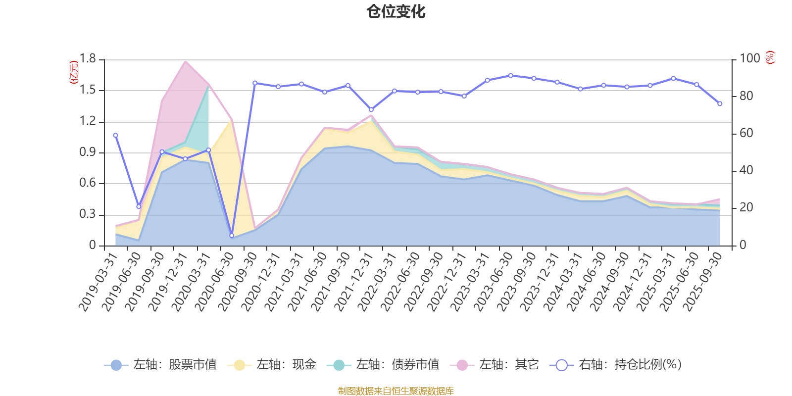 据定期报告数据统计,近三年平均股票仓位为86.02%,同类平均为72.35%。2023年上半年末基金达到91.35%的最高仓位,2020年上半年末最低,为5.49%。