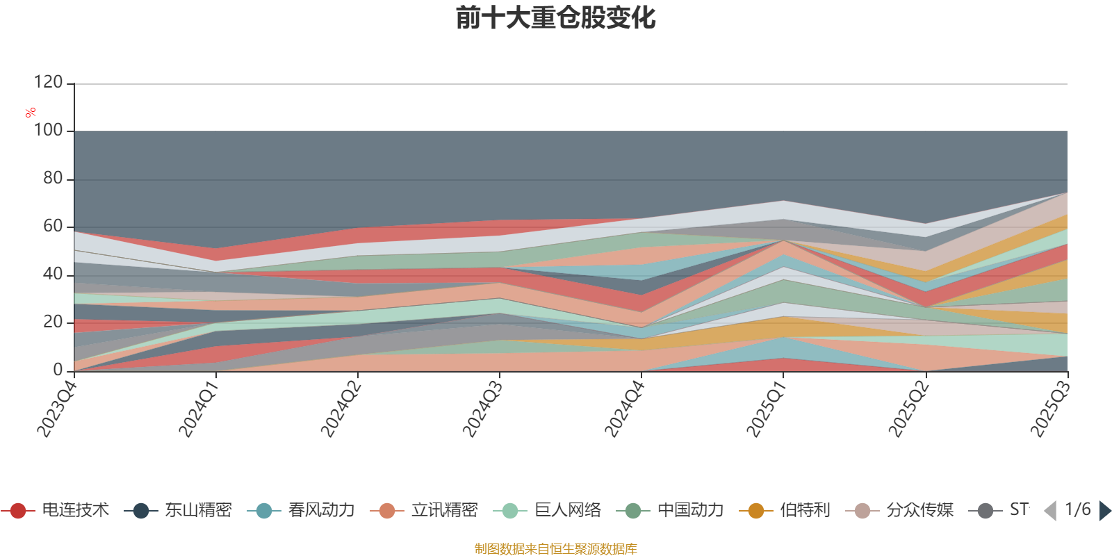该基金持股集中度较高。截至2025年三季度末,基金十大重仓股分别是巨人网络、金风科技、新易盛、大金重工、吉比特、沪电股份、亿纬锂能、东山精密、天孚通信、生益科技。
