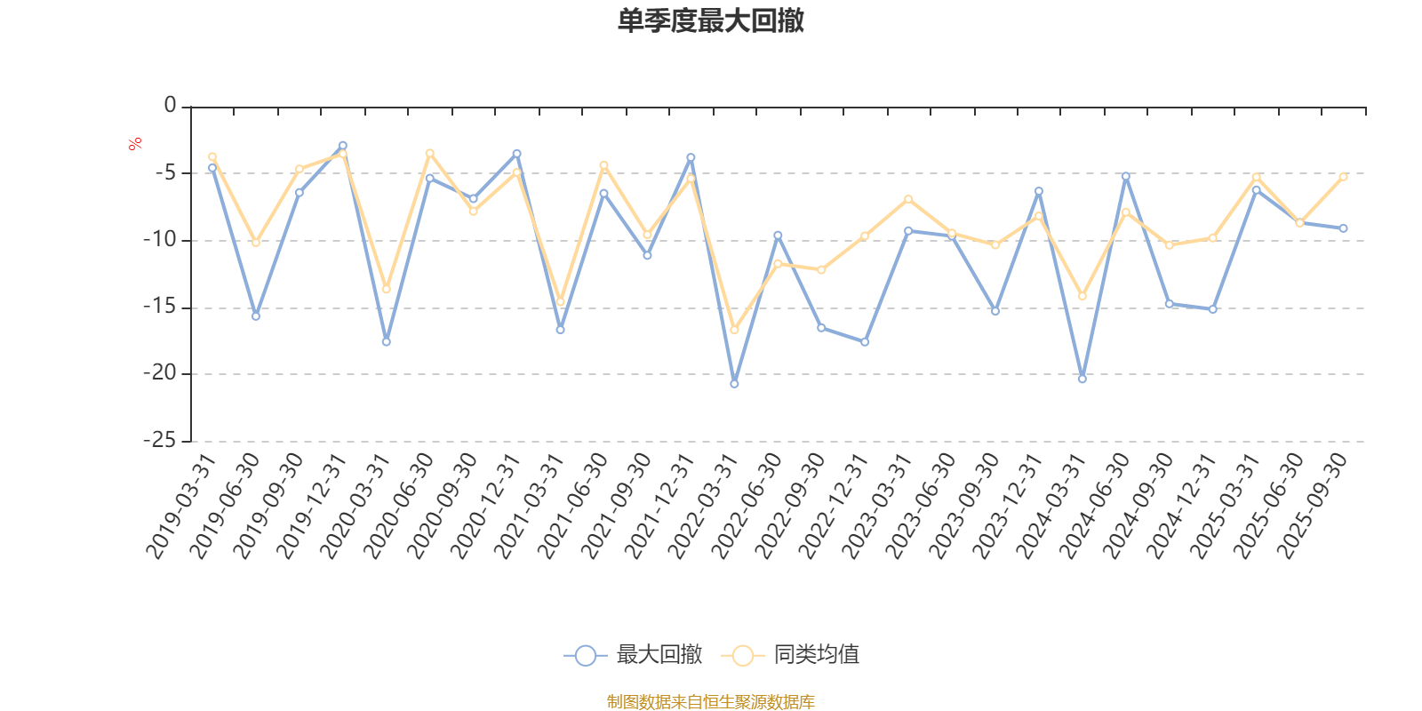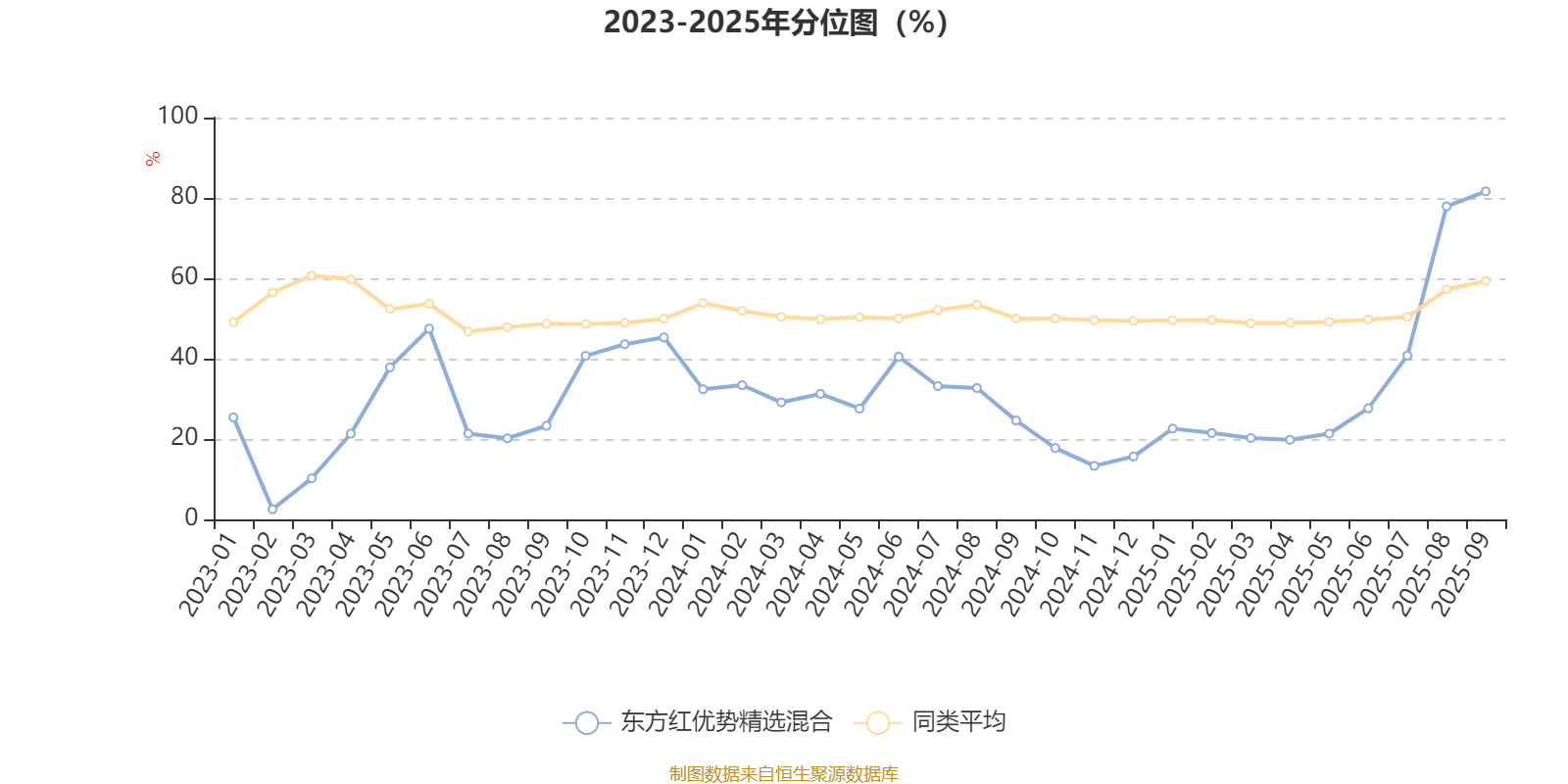 通过所选区间该基金净值增长率分位图,可以观察该基金与同类基金业绩比较情况。图为坐标原点到区间内某时点的净值增长率在同类基金中的分位数。