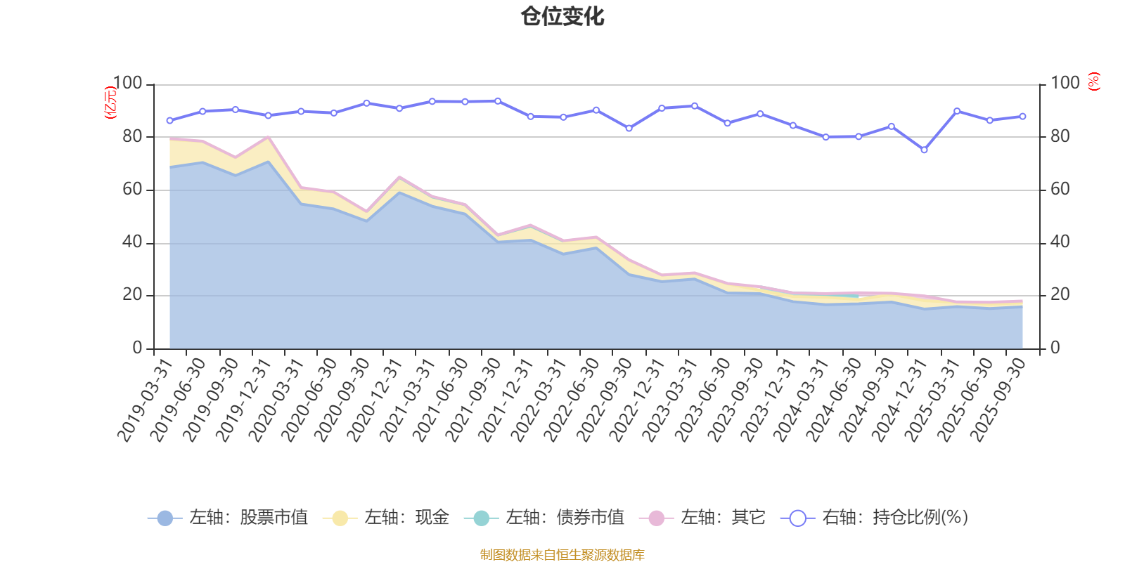 据定期报告数据统计,近三年平均股票仓位为85.43%,同类平均为72.35%。2021年三季度末基金达到93.66%的最高仓位,2024年末最低,为75.22%。
