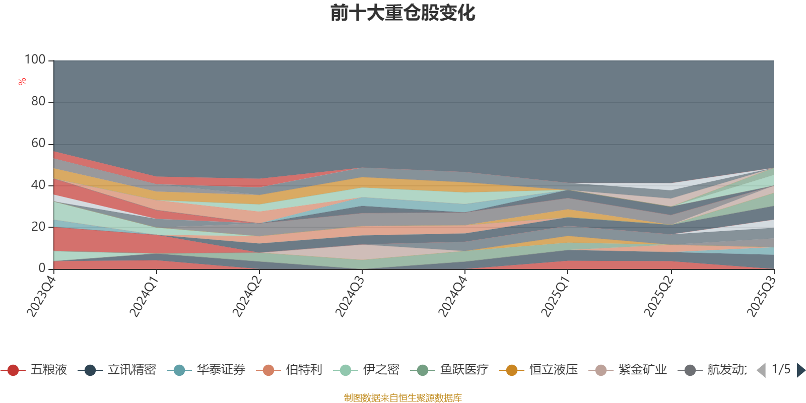 截至2025年三季度末,基金十大重仓股分别是立讯精密、中金黄金、科达利、中国平安、美的集团、航发动力、北方华创、华泰证券、东方财富、拓荆科技。