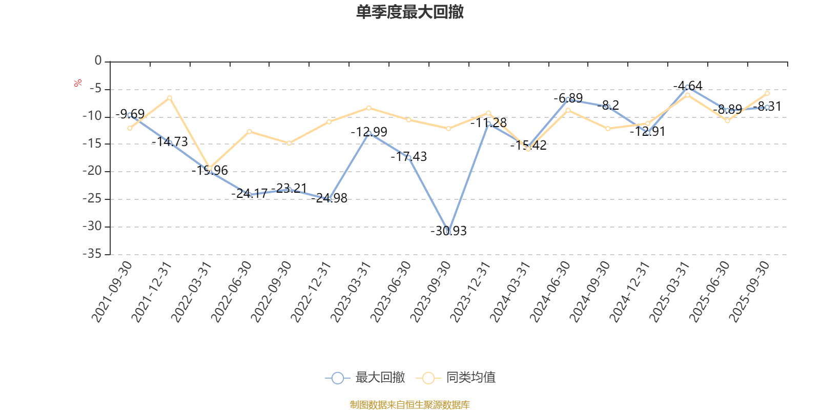 截至10月27日,基金近三年最大回撤为58.82%,同类可比基金排名355/363。单季度最大回撤出现在2023年三季度,为30.93%。