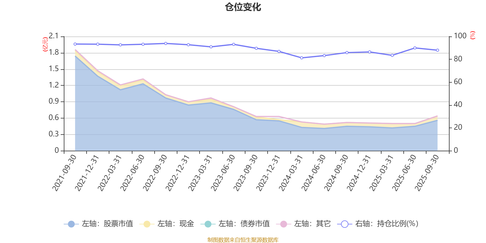 据定期报告数据统计,近三年平均股票仓位为87.64%,同类平均为83.73%。2022年三季度末基金达到93.89%的最高仓位,2024年一季度末最低,为81.29%。