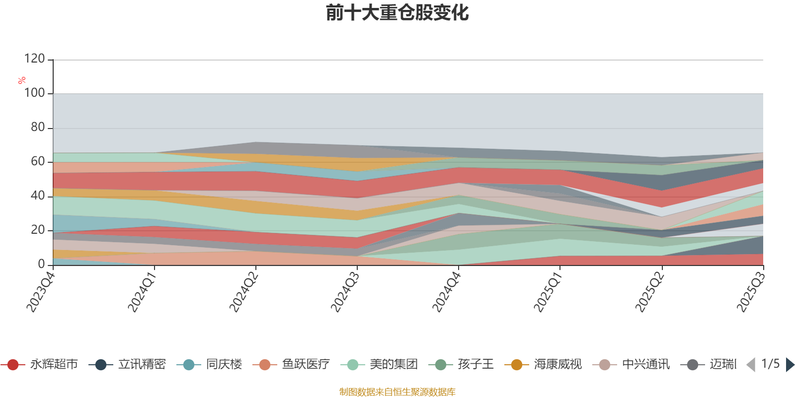 该基金持股集中度较高,近2年前十大重仓股集中度长期超过60%。截至2025年三季度末,基金十大重仓股分别是立讯精密、百亚股份、立华股份、上海新阳、恩华药业、永辉超市、泰恩康、澜起科技、江淮汽车、明阳智能。