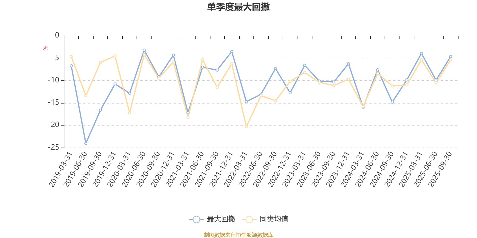 截至10月27日,基金近三年最大回撤为29.69%,同类可比基金排名73/251。单季度最大回撤出现在2019年二季度,为24.05%。